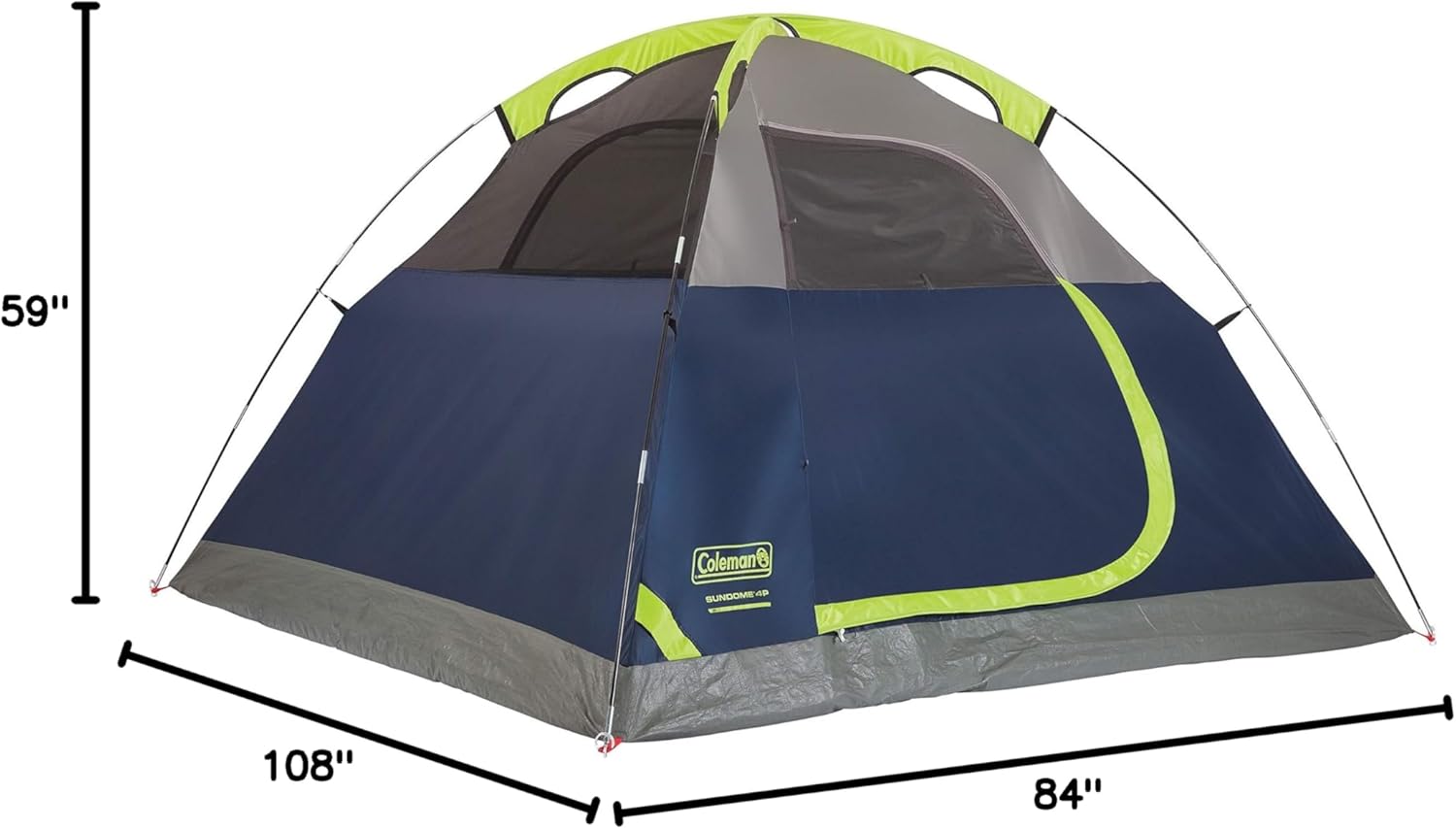 Introducing the Coleman® Sundome® 4-Person Camping Tent, your perfect outdoor getaway companion! This spacious and durable tent is designed to accommodate up to four people comfortably, making it ideal for family camping trips or outdoor adventures with friends.